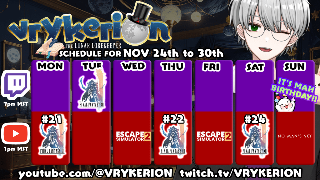 Hi! I’m Vrykerion! I am a blogger, variety streamer, and moonbunny vTuber who focuses on role-playing games and exploring the deep and weird lore there within.