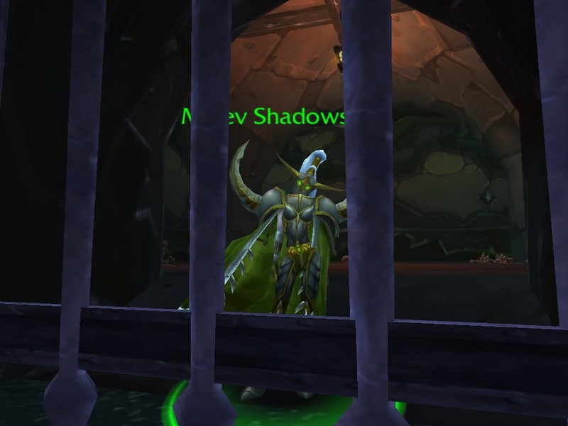Can someone please send Illidan a copy of the Evil Overlord List at this point? This is almost up there with leaving the key an inch out of arms reach from the cell and assuming that will be sufficient. The only thing that makes this worse is that Maiev is in her prison cell in full battle attire. Granted, she doesn’t have her weapon at the moment, but he armor provides enough pointy bits that you could easily shank your way out of that prison with them. I can’t even think of a reason to let her keep it. At all. There is no justification in the world that would lead me to think that letting a prisoner keep gloves with claw fingers and bladed shoulder pads would be okay. It makes me want to kill Illidan just out of spite for his stupidity!