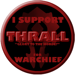 Earlier today I decided to blow off some steam at work by coming up with a series of campaign ads for different candidates for Warchief.  They turned out to be quite popular around the Twitter-sphere, so I thought I’d make up some campaign buttons for those who wanted to show their support!  Each one features one of the candidates: Thrall, Garrosh, Basic Campfire, Deathwing, or Richard Knaak, as well as a small slogan for their campaign.  Grab the one you want or a ZIP file of all 5 at the bottom and show support for your candidate of choice!  Also, if you use one on your blog, profile or websites, if you could point others to where to find their own it would be most appreciated. 😀