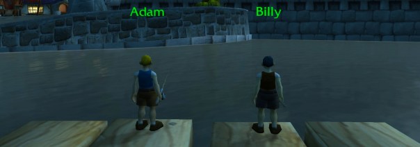Have I got a whale of a tale for ya. It ain’t no fish story either. More of a boot story really. You see, down in the canals of Stormwind city there are a pair of young men – Billy and Adam. Two young boys who seem the same as any of the other children running about Stormwind. They’re young, cheerful and enjoy their fishing. However, if you follow these two around you’ll quickly notice somethings amiss. Either Billy is a pathological liar or Adam is the most skeptical grade schooler I’ve ever seen.