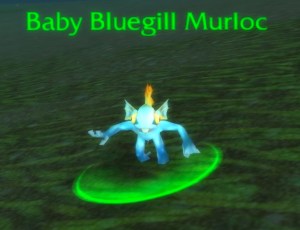 …Well, that was the man police.  They said I could watch cartoons all day OR fawn over baby murlocs but not both apparently, so they revoked my Man Card.  I should have seen this coming when I started collecting plushies. *shrug*  Anyway, given my aforementioned affinity for infantile murlocs, you can imagine my surprise when I was doing the Orgrimmar cooking daily quest, ‘Clammy Hands’, and when I opened one of these massive clams to pry out its tasty meats, a baby Bluegill murloc appears.  Wait… what?