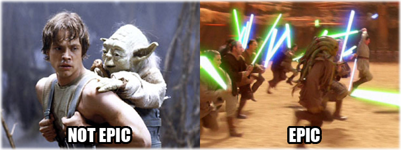 So, in the spirit of taking people’s honest answers and distorting them into something completely unintentional for the sake of humor (I learned it from you, Leno! I learned it from YOU! /sob), the Land of Odd is proud to present the grand chart of what is and what isn’t epic, following the established concept of More People = More Epic: