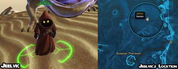 So, you’ve been collecting these DNA Samples, but what do you do with them? Well, just north of the crash site in the Dune Sea, there’s a little jawa with a dewback named Jeelvic. He’ll gladly take those samples off your hands in exchange for some neat items. They include:
