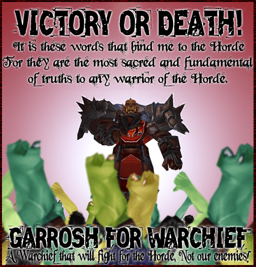 The battle lines have been drawn, hats thrown into the ring and a royal rumble of Horde politics have begun! With a record number of five candidates running for the coveted position of Warchief this fall, each camp has been rushing to win over voters hearts and minds. Ironically, the only camp we haven’t seen much movement coming from is the Basic Campfire camp, which is making us all wonder if inanimate objects have a harder time making decisions quickly. However, despite the mad grab for voters attention, one group has proven to be a clear winner to be the first to put out a campaign ad. That would be the Hellscream camp offering us this poster: