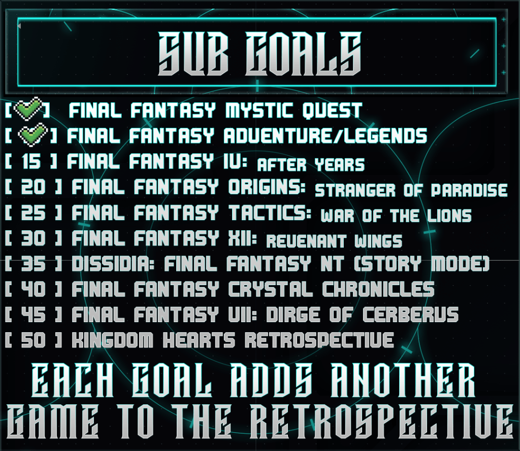 This is the central hub for my current ongoing project to replay through and experience the entirety of the Final Fantasy franchise, starting from the very first game and playing through as many of the titles as I can feasibly get my hands on.